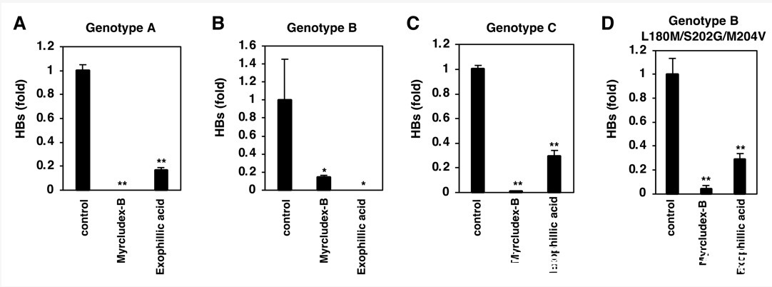 值得一提的是,研究人员还注意到,嗜外酸表现出泛基因型的抗HBV作用。所以,把嗜外酸确定为抗HBV/HDV活性的新型进入抑制剂,它有望成为开发慢性乙肝和丁肝抗病毒创新药物的潜在先导化合物。